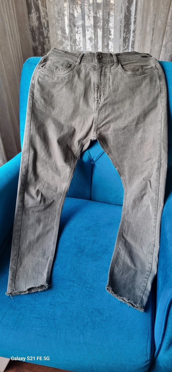 Yeşilimsi bir Gri renk, regular fit, likralı kot kumaştan. Bel:43 basen:50 boy:93