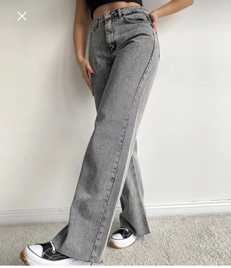 Gri renkli, regular fit kesim midi uzunlukta denim kadın jean.