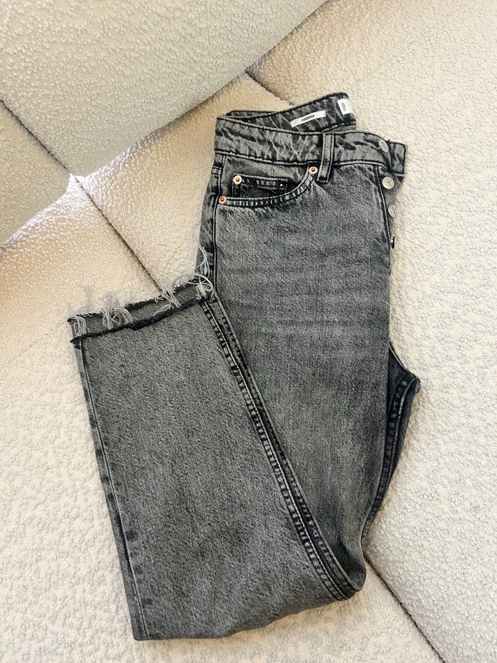 Gri batik desenli regular fit midi uzunlukta kadın kot pantolon. Kürk detaylı, sokak modasına uygun rahat bir tasarım, günlük kullanım için ideal.