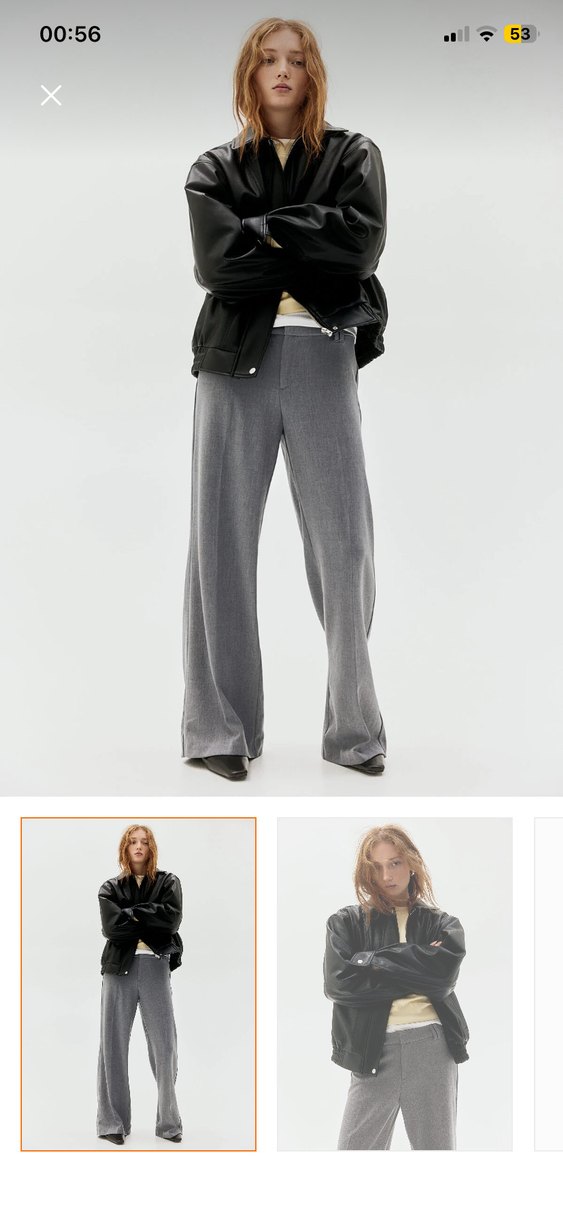 Gri renkte, regular fit ve midi boyda denim kumaştan üretilmiş, ofis için uygun rahat ve şık kadın pantolonu.