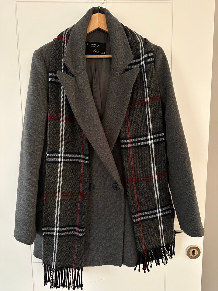 Gri yün kaban çok iyi durumda
