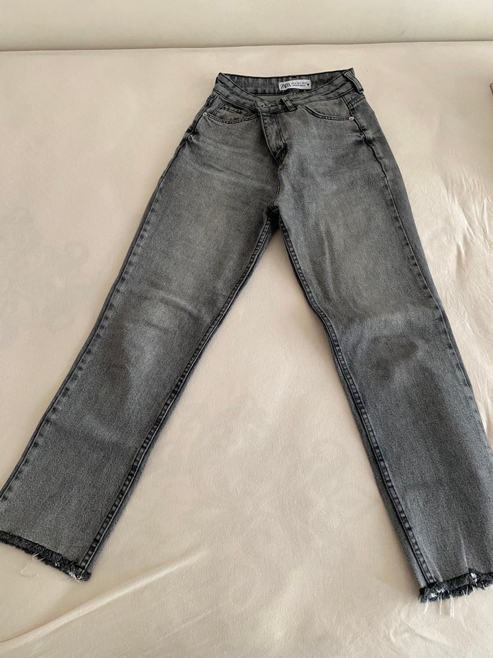 Gri renkte, midi boy, regular fit kot pantolon. Günlük rahat kullanıma uygun, sade ve şık tasarıma sahip. Streetwear tarzı için ideal. Bel:66 cm Boy:93 cm