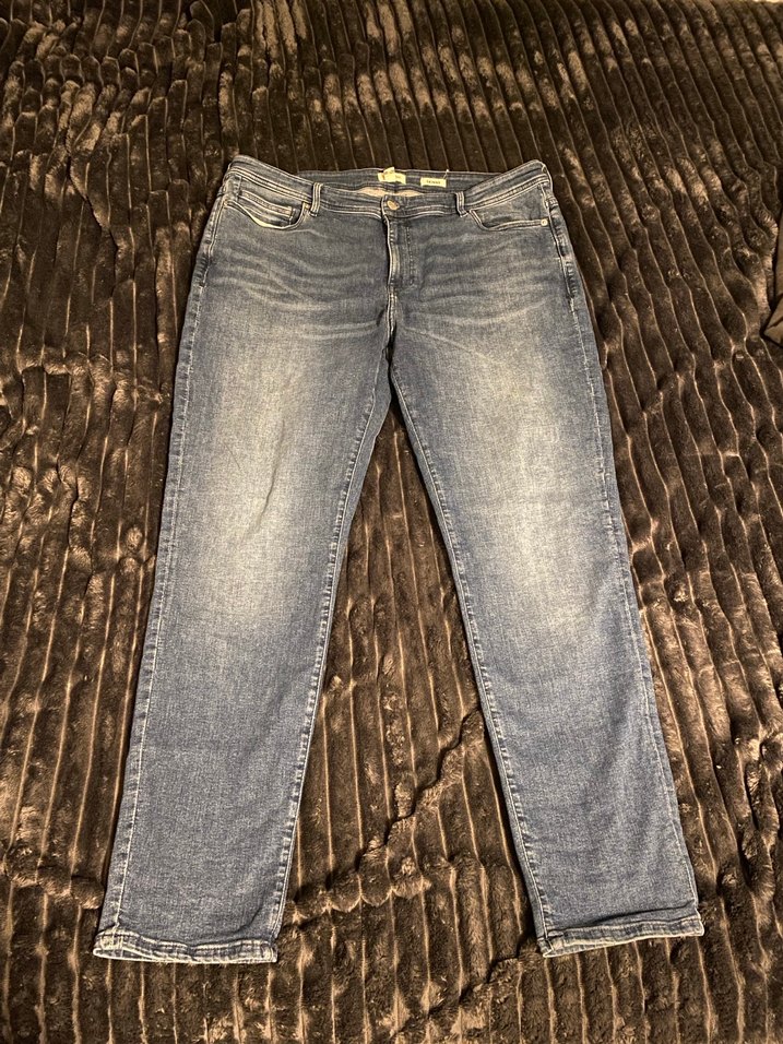 Gri kot pantolon, regular fit ve midi boyda, kemerli beliyle rahat bir görünüm sunar. Günlük kullanım için uygundur. 48 beden