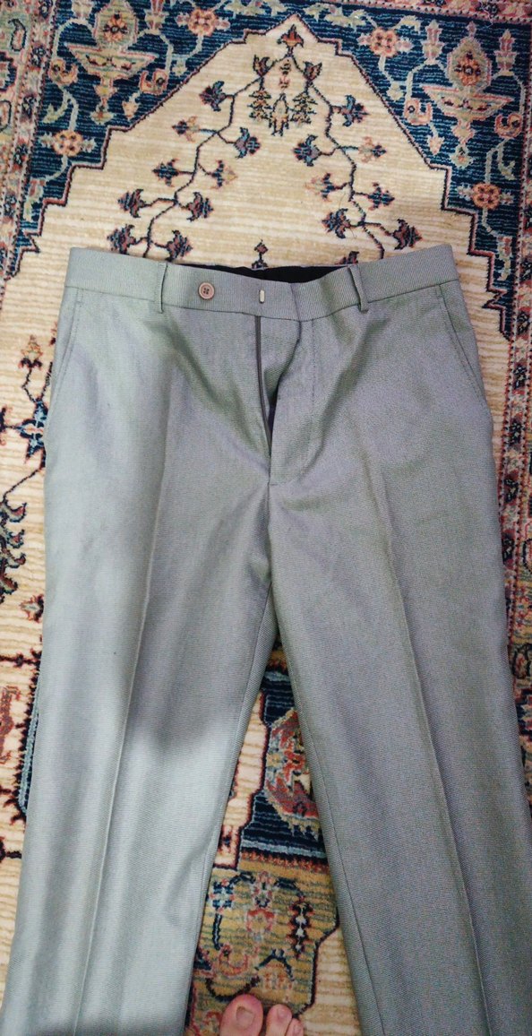 Gri renkte, düğmeli, regular fit ve normal boyda iş ve günlük stil için uygun pantolon.