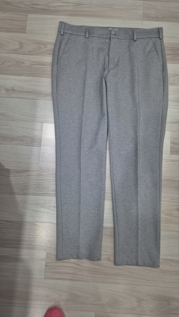 Gri, regular fit, normal boy, elastik sentetik kumaştan yapılmış erkek pantolonu. Ofis ve iş ortamları için uygundur.