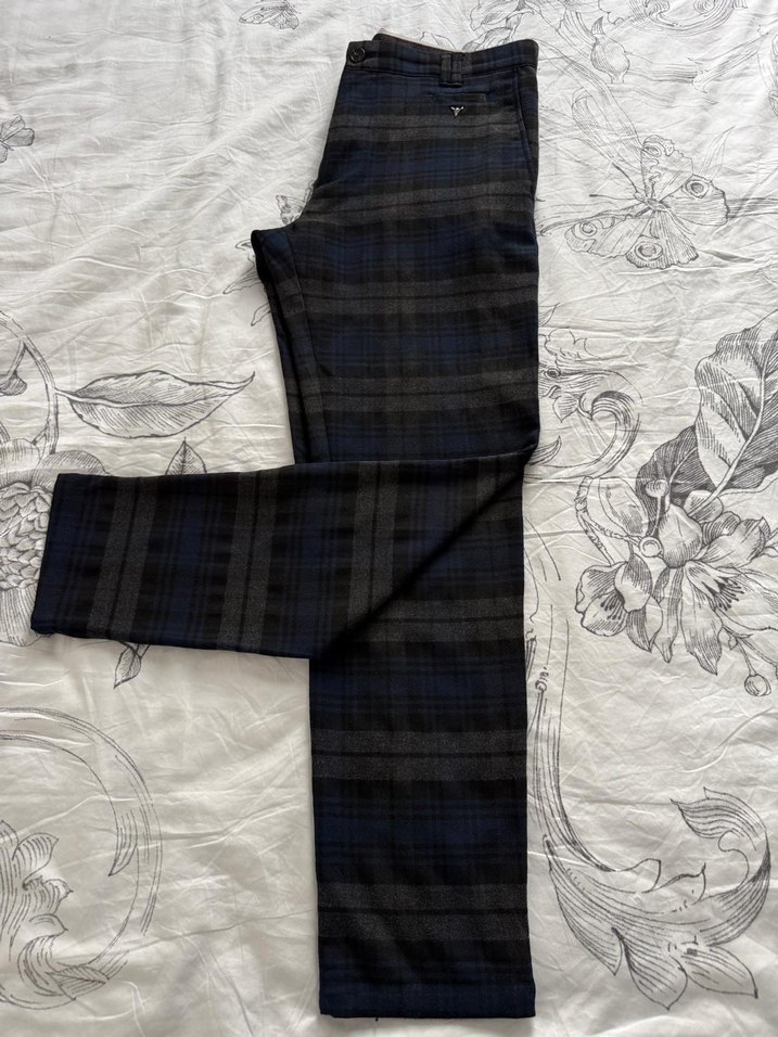 Gri renkte, regular fit ve pliseli erkek pantolon. Uzun boylu, sentetik kumaştan, sokak modası ve ofis için uygun.