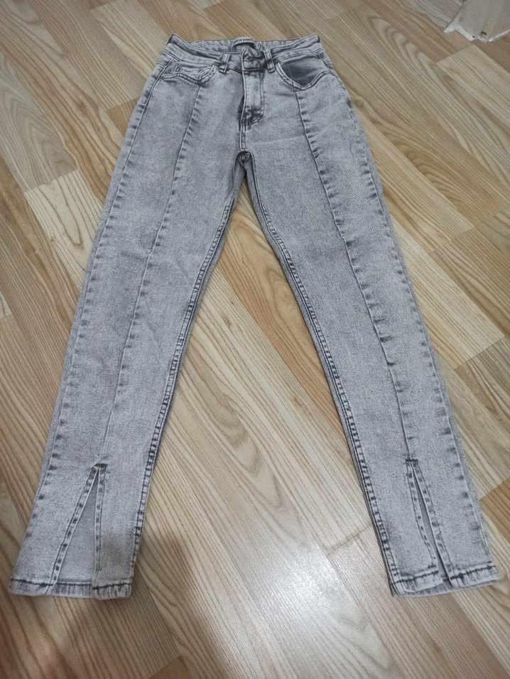 Gri renkli, regular fit kesim kadın jean. Denim kumaştan, tie-dye desenli ve paça kısımlarında yırtmaçlı. Günlük kullanıma uygun. 27/36 beden.