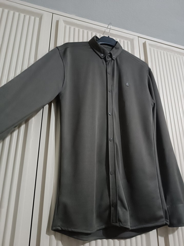 Gri renkli, düğmeli uzun kollu erkek gömleği, regular fit kesim ve yakalı tasarıma sahiptir. Günlük sokak stili için uygundur.
