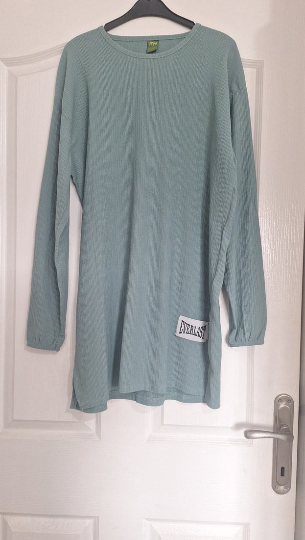 Pastel gri renkli, uzun kollu ve yuvarlak yakalı basic hamile tişörtü. Yumuşak keten kumaştan, rahat ve şık bir günlük kullanıma uygundur. Midi boyda, desen içermeyen sade tasarım.