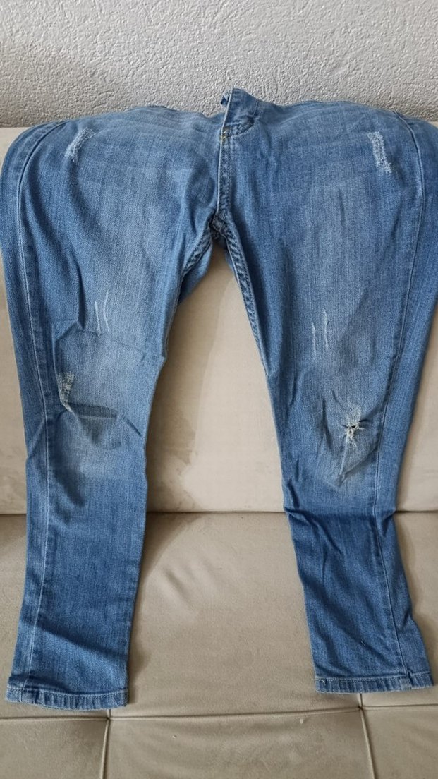 Gri tonlarında, bol kesim ve midi boy kadın kot pantolon. Yırtık detayları ve yırtmaçlı tasarımıyla günlük sokak stiline uygun. 28beden 2kere giyildi