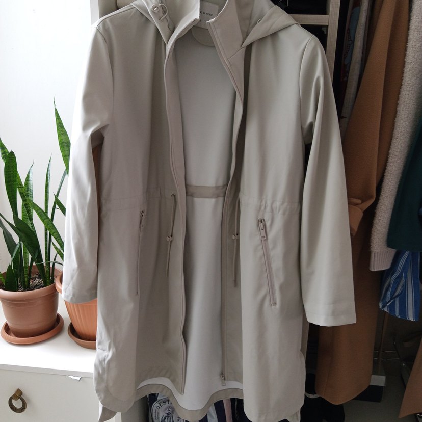 rengi modeli çok güzel çok giyilmemiş arkasında sarımtırak lekeler oluşmuş o yüzden satılık çıkar mı bilmiyorum belki kuru temizleme ile halledilir yağmurdan koruyor sıcak tutuyor astarsız