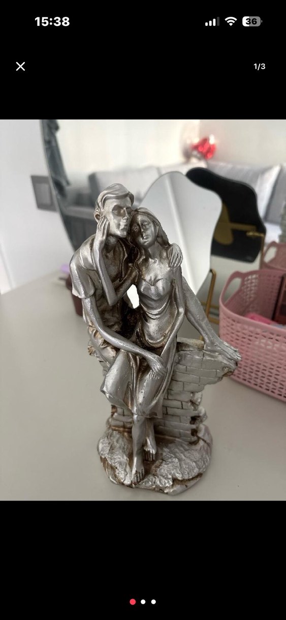 Gri renkte, birbirine sarılmış aşık çift figürü, samimi ve duygusal bir tasarıma sahip. ❤️