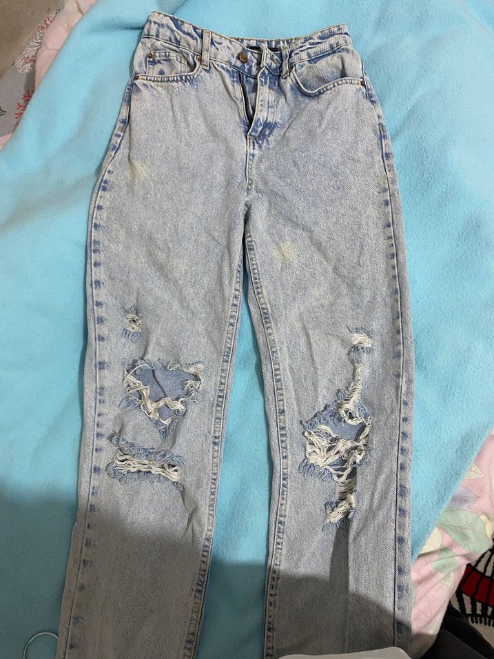 Gri Renkli Bağcıklı Yırtık Detaylı Denim Jean