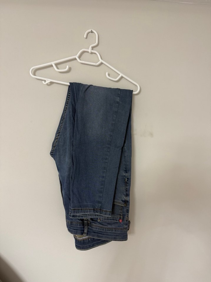 Gri renkte, bol kesim ve normal midi boyda kot pantolon. Tokalı detaylarıyla günlük rahat sokak stili için uygun.