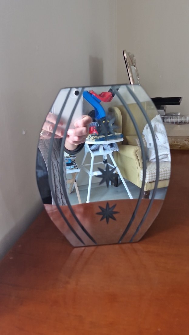 Yıldız ve çizgi desenlerine sahip koyu gri tonlarda altıgen dekoratif aynalı vazo odanıza farklı bir hava katıyor.