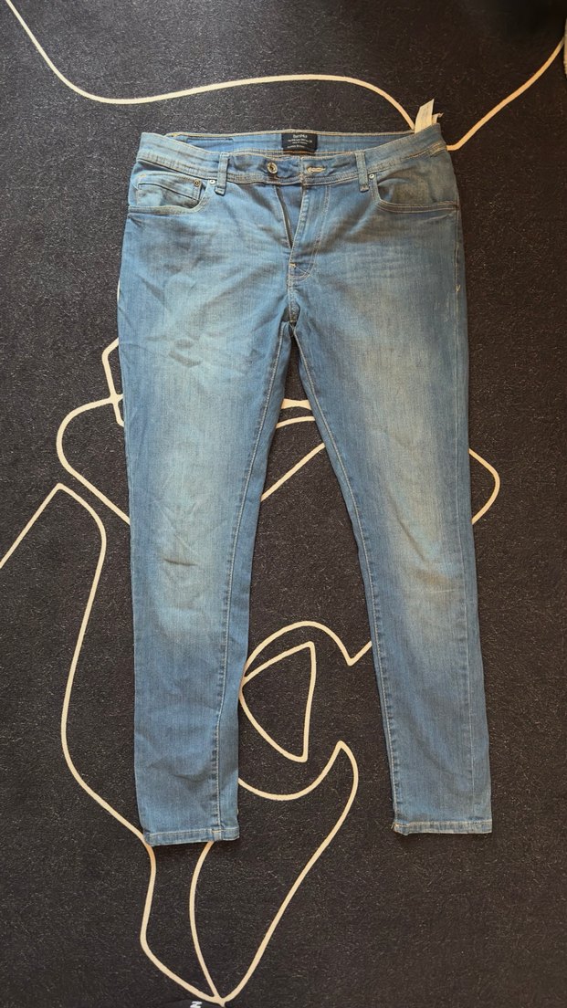 Gri renkte, normal boy, kemer tokalı, desen olmayan erkek jean pantolon. Günlük rahat sokak stili için uygundur. En 40 boy 101