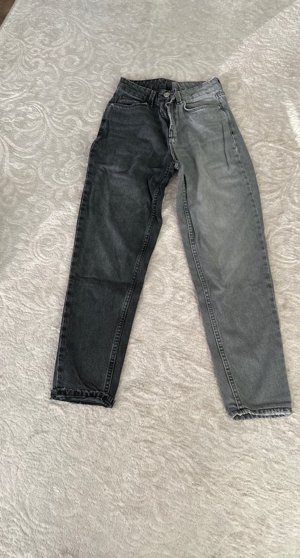 Kadınlar için salaş kesim ve çift tonlu gri renkte, günlük kullanım için rahat denim kumaştan yapılmış jean. Cd bedenede uyar