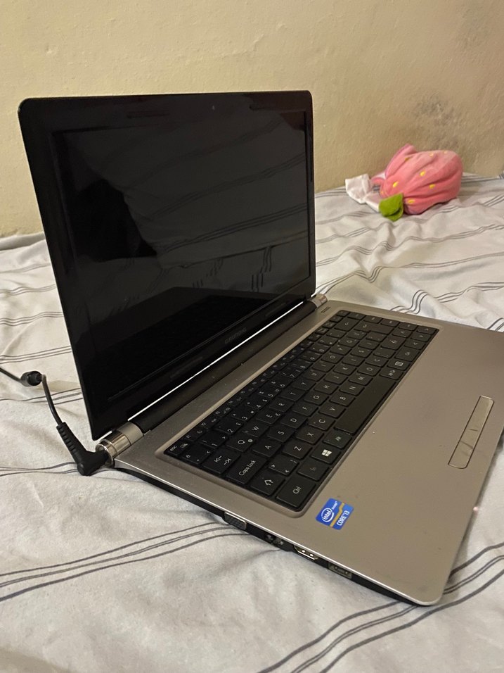 Gri renkli, tam klavyeli ve mat ekranlı laptop bilgisayar. Ekranı ve havıza kartı değişti 256 gb hafıza windows 8