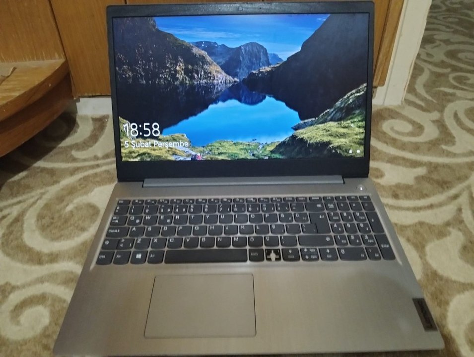 Gri renkte laptop, tam klavye ve geniş touchpad ile. Ekranda 18:58 saat ve 5 Şubat Perşembe tarihi görünüyor. Dağ ve göl manzarası arka planda. Ürün hakkında:İşlemci: Intel® Celeron® 5205U @ 1.90 GHz RAM: 4 GB DDR4 (2400 MHz) Ekran Kartı: Intel® UHD Graphics (128 MB paylaşımlı) Depolama: 128 GB SSD (119 GB kullanılabilir alan) İşletim Sistemi: Windows 10 / 64-bit Sistem Türü: x64 tabanlı işlemci ürünümüzün üzerinde neredeyse görünmeyecek kadar küçük bir çizik vardır.