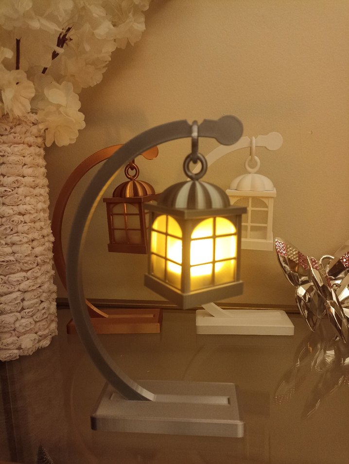 Kavisli standa asılı bej mini fener mumluk, sıcak ve samimi bir ışık efekti sağlar. Dekoratif aydınlatma için uygundur. ️LED mumlu
