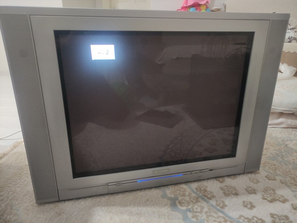 Gri renkte, klasik tasarımlı, alt kısımda kontrol düğmeleri bulunan düz ekran monitör. ️ (televizyon). Kargolamam mümkün değildir.