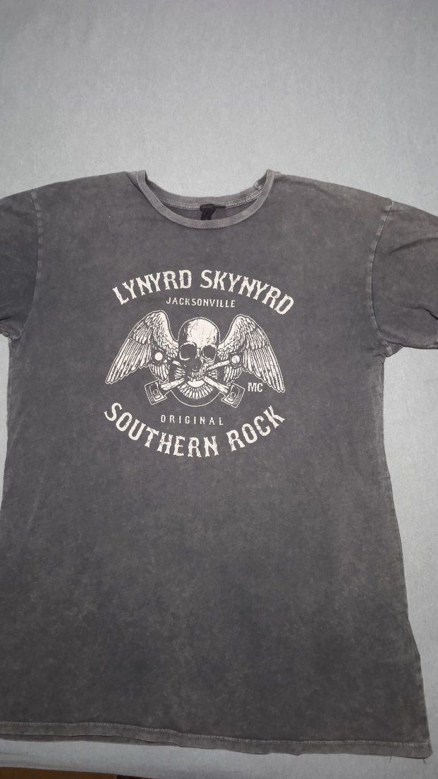 Gri renkli, kısa kollu, yuvarlak yaka erkek tişörtü. Baskılı rock punk deseni ve kemerli detaylara sahip, rahat kesim ve normal boyda.