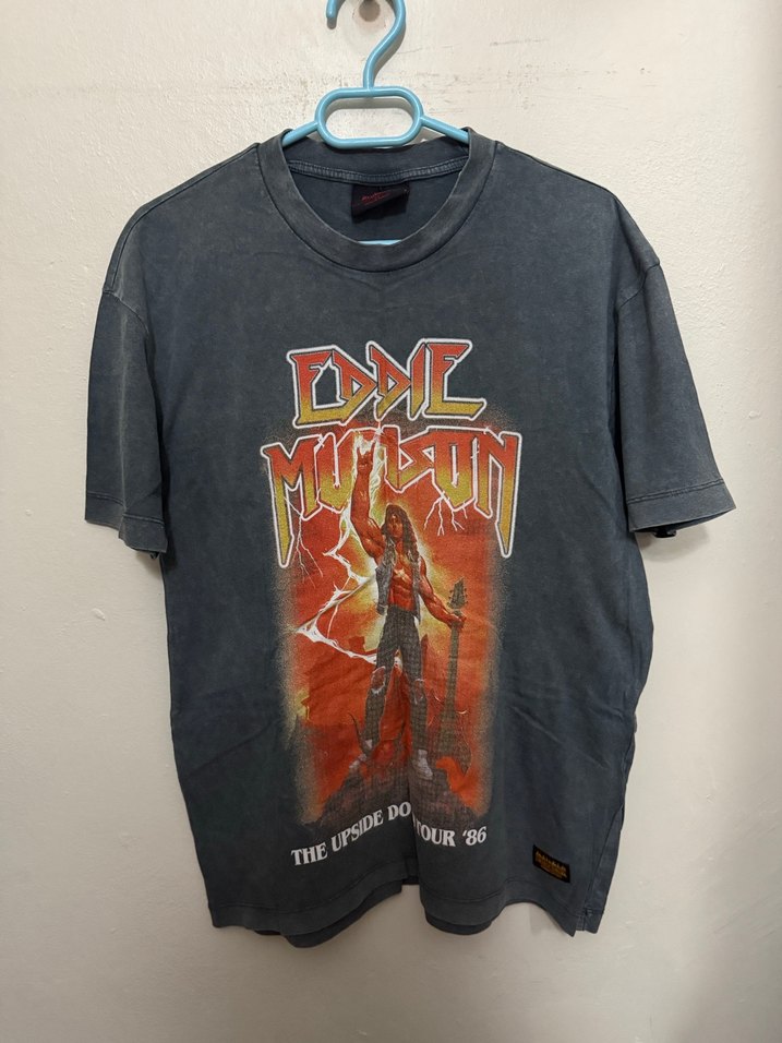 Gri renk, metalik baskılı Eddie Munson figürlü, kısa kollu, yuvarlak yaka, bol kesim erkek tişörtü. ⚡