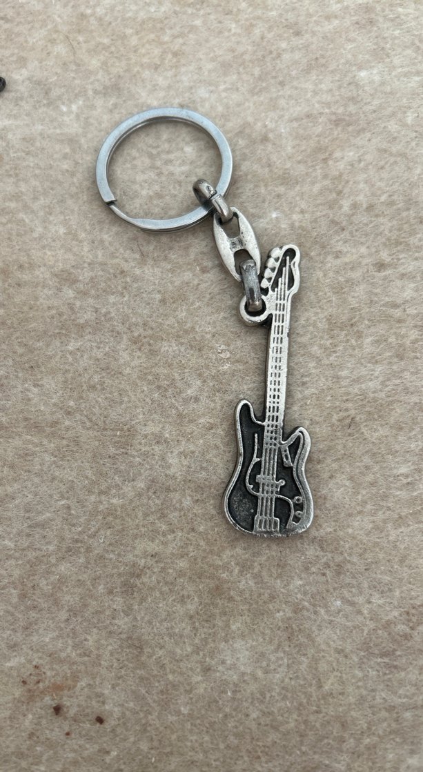 Gri renkte, detaylı gitar figürlü anahtarlık. Grunge punk