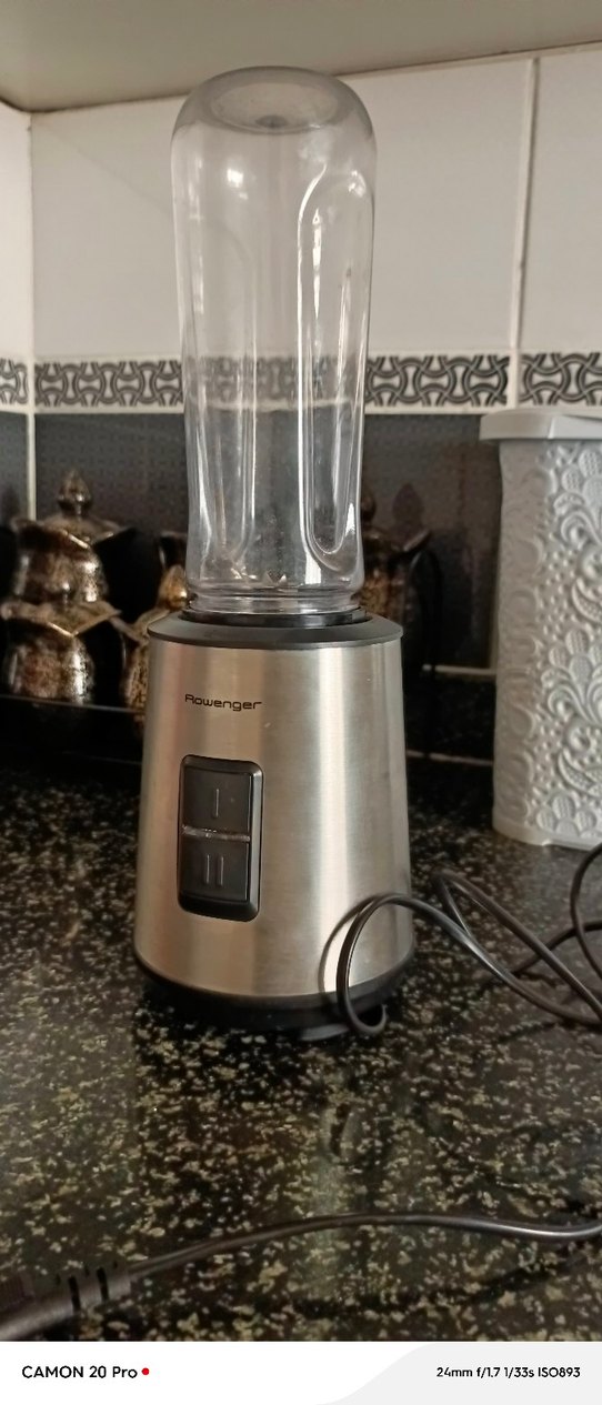 Gri renkli Rowenger katı meyve sıkacağı, iki kontrol düğmesi ve şeffaf haznesi ile pratik kullanım sağlar. soğuk kahve bile yapılabilir az kullanılmış tertemizdir