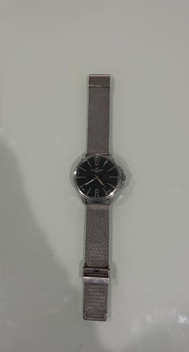Gri kemerli file kayış ve siyah kadranlı saati, klasik zarafet ile çağdaş stili birleştirir. ⌚