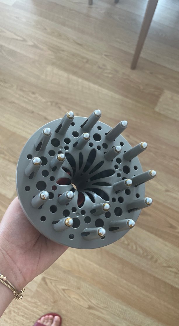 Gri renkli saç kurutma makinesi için difüzör aparatı, hava akışını dengeli dağıtarak saç hacmi ve bukleleri artırır. ️