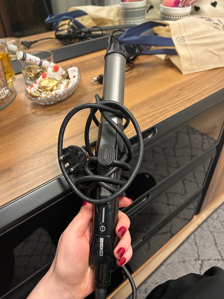 Gri saç maşası, kullanımı kolay ergonomik tutamaç ve uzun kabloya sahiptir. Dalgalı ve kıvırcık saçlar için uygundur.