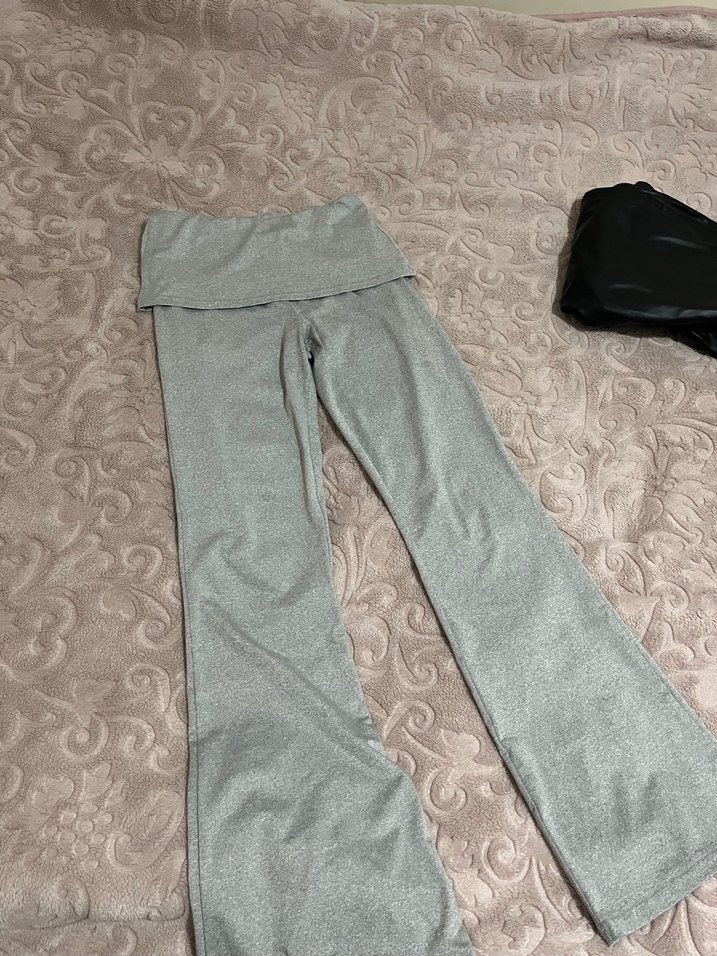 Yumuşak sentetik kumaştan, rahat katlanabilir bel bantlı gri salaş hamile pantolonu. Günlük sokak stiline uygun.