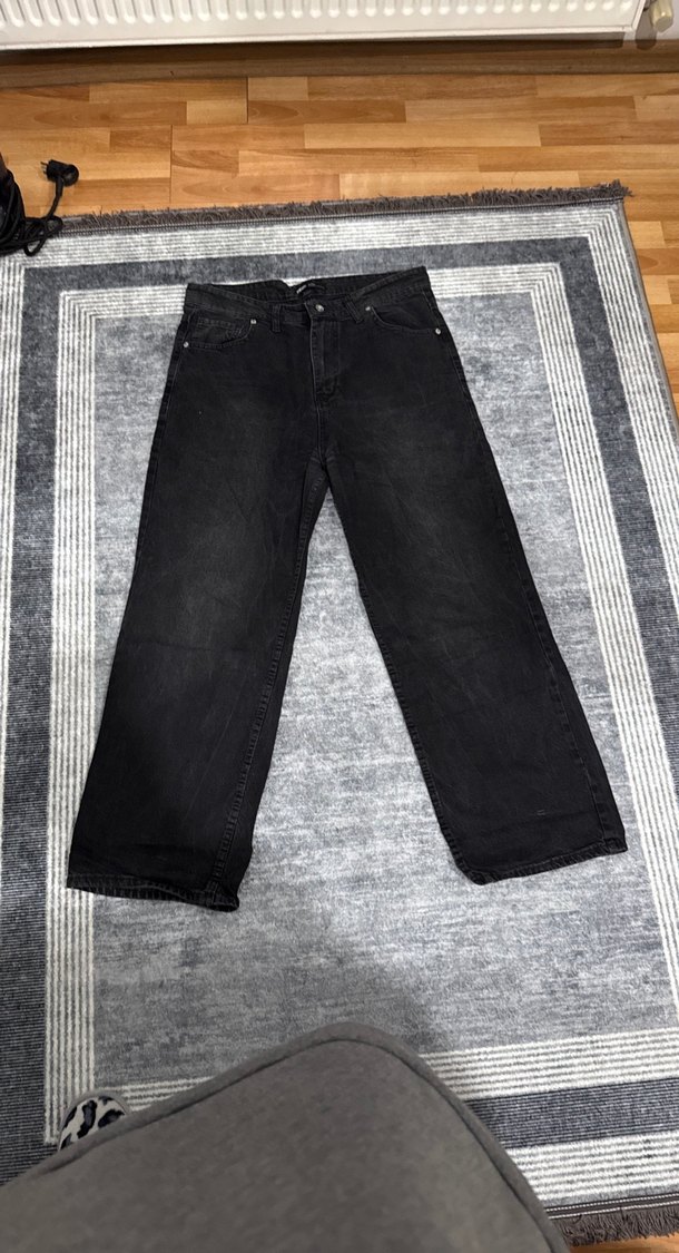 Gri renkte, midi boy ve salaş kesim kadın denim pantolon. Desensiz, rahat ve şık görünümüyle günlük kullanıma uygundur.