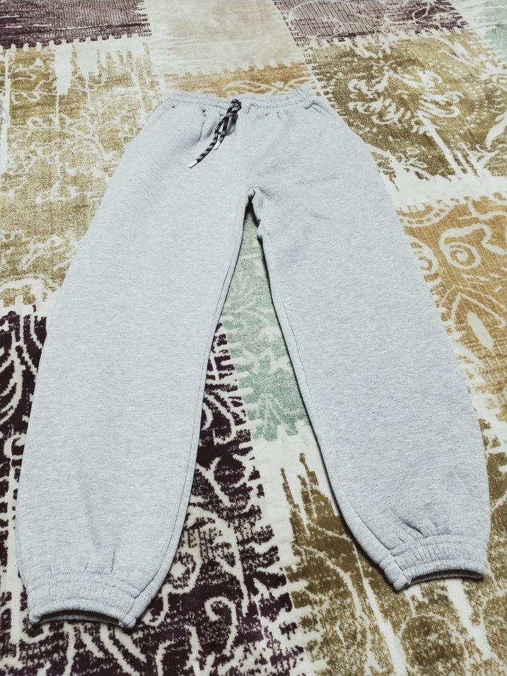 Gri renkte, yumuşak ve sıcak kumaştan yapılmış salaş kesim kadın eşofman altı. Günlük kullanım için rahat ve şık, midi boy ve lastikli paçalarla. Şardonlu sıfır ürün