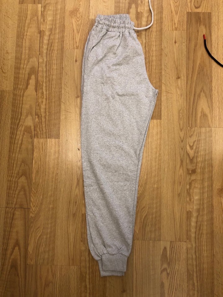 Gri renkte, keten kumaştan salaş kesim ve midi boy kadın eşofman altı. Rahat ve şık, günlük kullanım için uygundur.