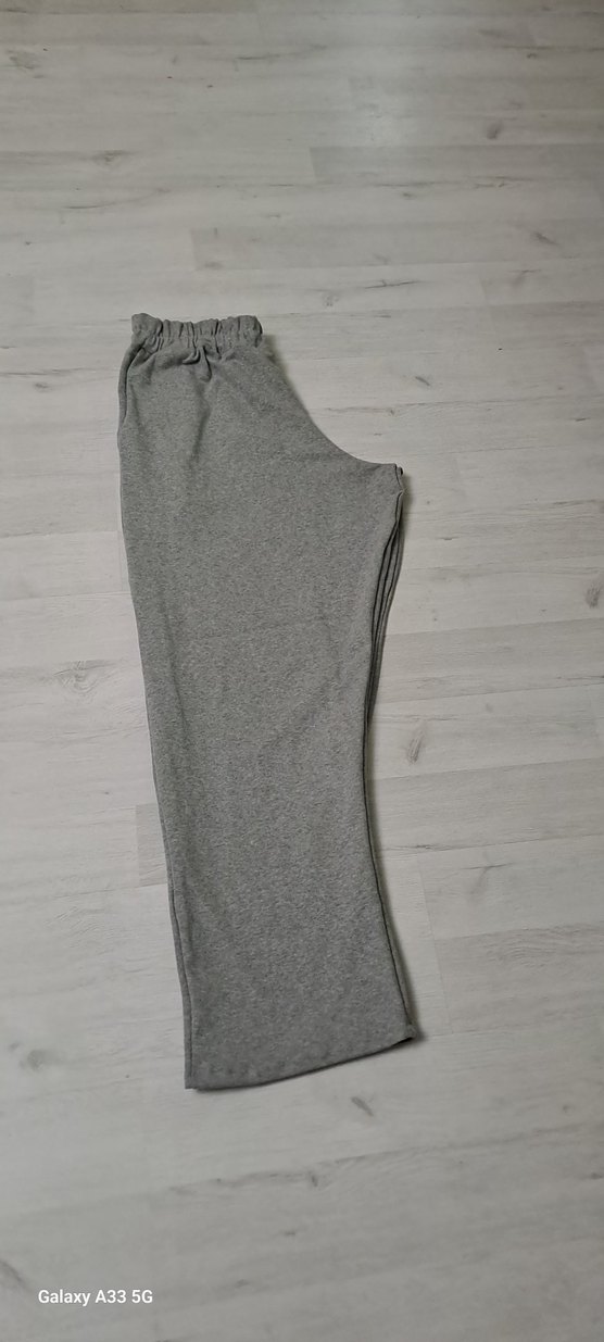Gri, salaş kesim, normal midi boyunda, sentetik kumaştan kadın eşofman altı. Günlük kullanım için sade ve desensiz tarzda, rahat ve zahmetsiz şıklık sunar.