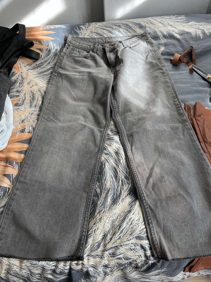 Gri kot pantolon, salaş kesim,günlük sokak tarzı için uygundur.