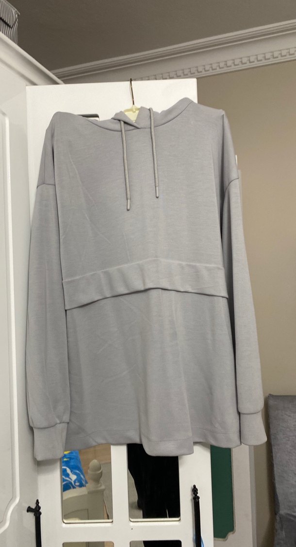 Gri renk, uzun kollu, yuvarlak yakalı ve salaş kesim kadın sweatshirt. Yumuşak ve sıcak kumaştan, günlük kullanıma uygun rahat bir model. ✨