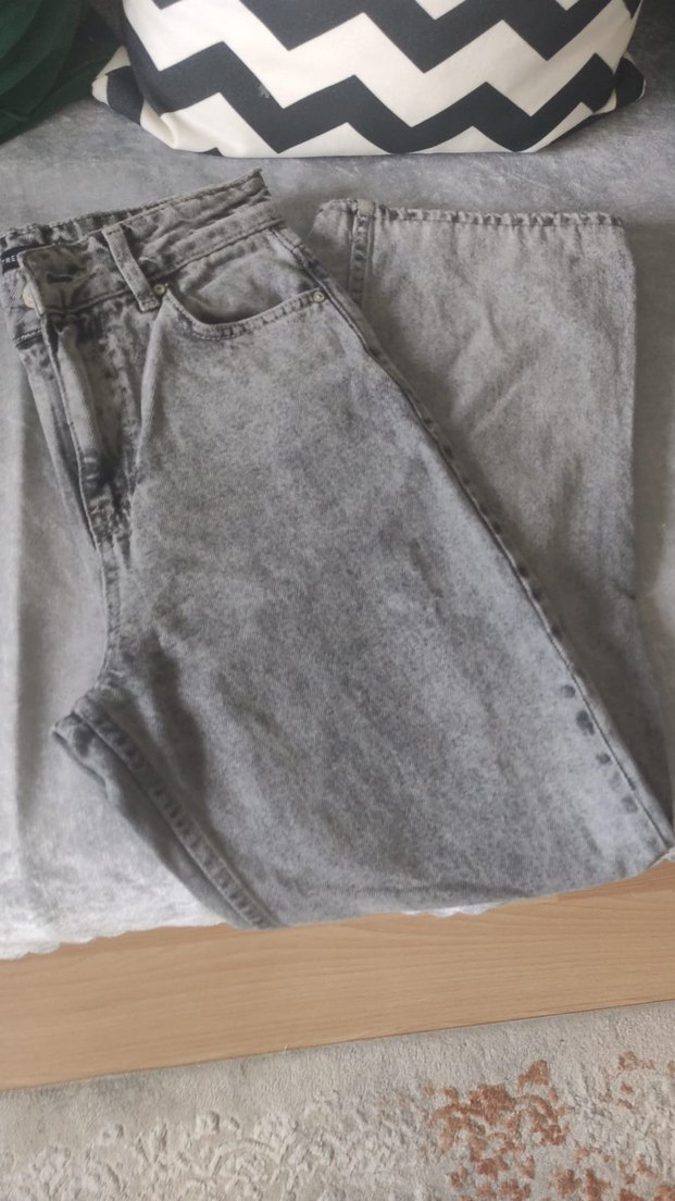 Gri denim kumaştan, salaş kesime ve midi boyda, gündelik sokak modasına uygun rahat ve şık kot pantolon. Trenyol ürünü 34 beden mükemmel bir pantalon çok az giyildir xs