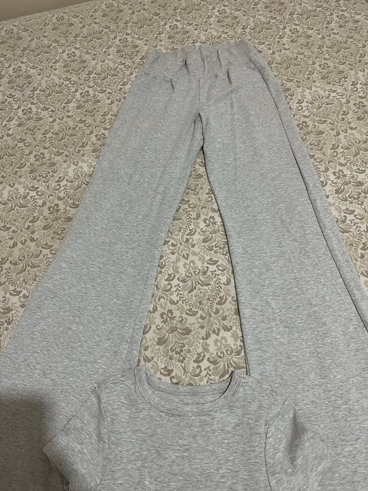 Gri Salaş Keten Kadın Eşofman Altı