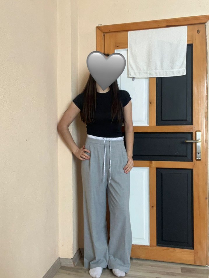 Gri renkte,ve salaş kesim kumaş pantolonu, düz desensiz ve rahat sentetik kumaştan üretilmiştir.ambar markası