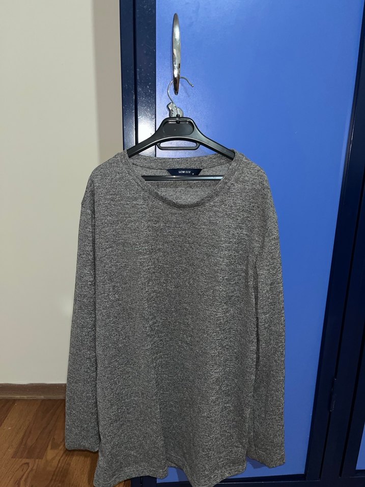 Gri renkte, keten kumaştan yapılmış, salaş kesim ve uzun kollu, yuvarlak yakalı kazak. Minimalist ve desensiz tasarımıyla günlük kullanıma uygun.