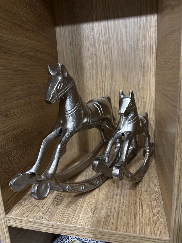 Bu set, dekoratif kullanım için tasarlanmış iki gri sallanan at biblosundan oluşmaktadır. Mudo concept Çocuk odası veya salonunuzda aksesuar olarak kullanmak için harika bir tercih Evimde çok fazla aksesuar olduğu için sayıyorum