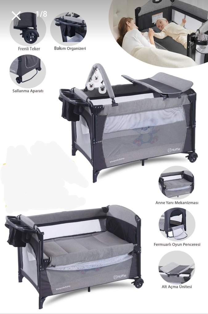 Gri renkli oyun parkı, sallanma aparatı, frenli teker, bakım organizeri, fermuarlı oyun penceresi ve alt açma ünitesi içerir. Anne yanı mekanizması mevcuttur. ️NEREDEYSE YENİ GİBİDİR 2 - 4 AY KULLANILDI KULLANILMADI HİÇBİR SORUNU YOKTUR