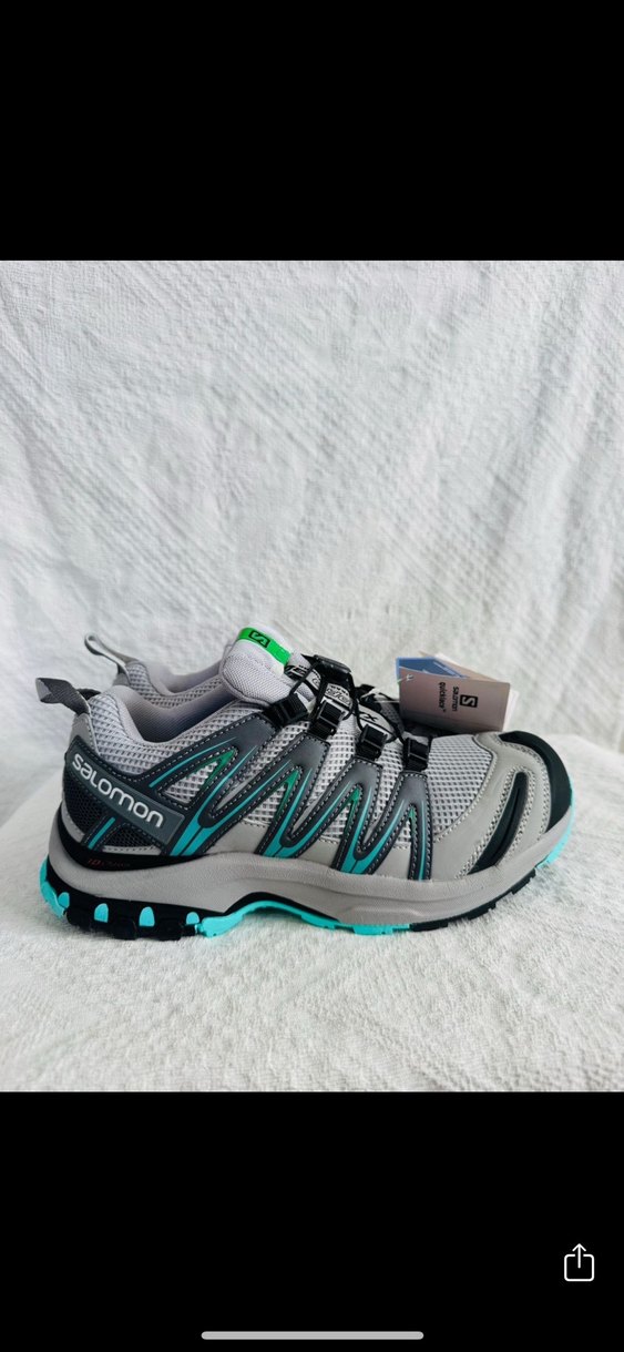 Gri Salomon erkek spor ayakkabısı, Velcro bantlı, baskılı tasarımlı ve kauçuk tabanlıdır, sportif ve sokak stili sunar.