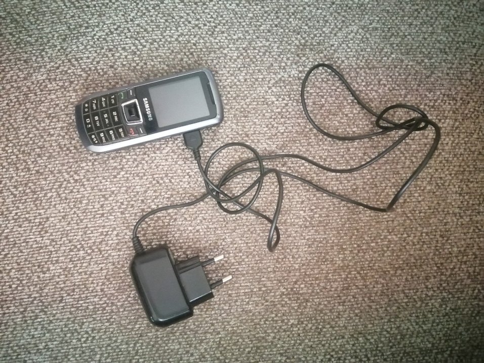 Gri Samsung Tuşlu Telefon ve Şarj Aleti