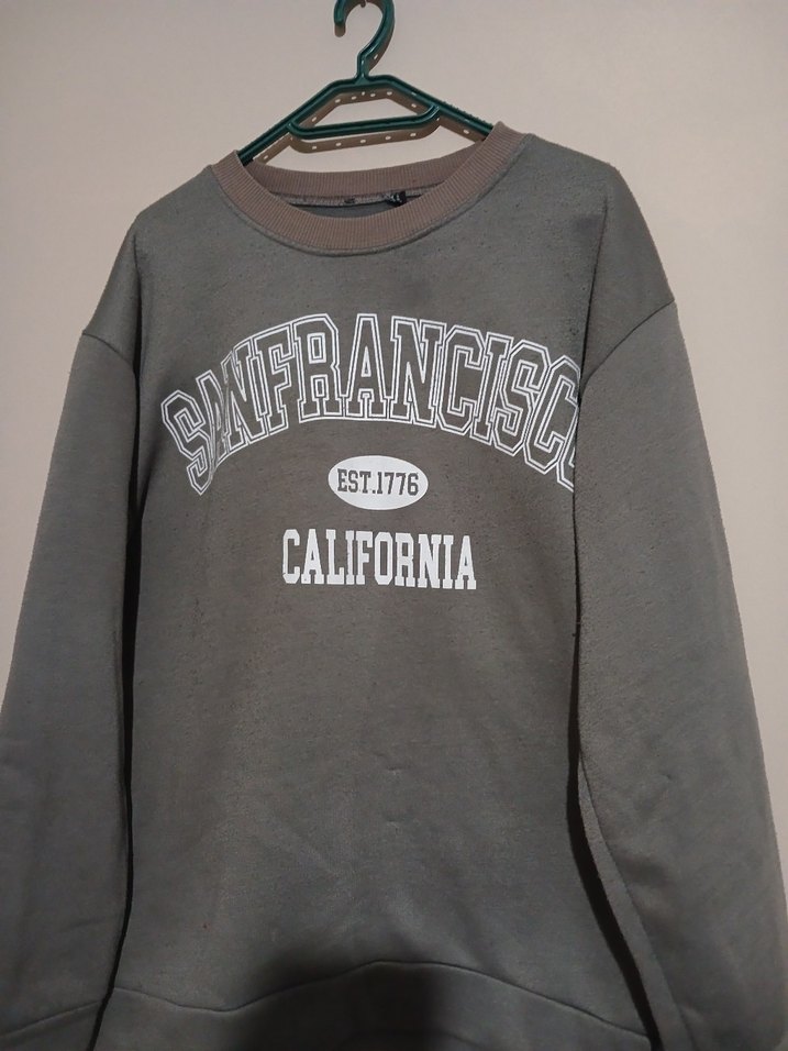 Gri renkte, yuvarlak yaka ve uzun kollu, bol kesim kadın sweatshirt. Önünde "San Francisco California EST.1776" baskısı bulunur, yumuşak ve sıcak kumaştan yapılmıştır. ️