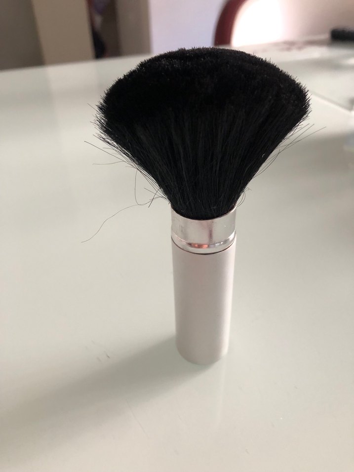 Beyaz saplı, yoğun siyah kıllara sahip makyaj fırçası, pürüzsüz uygulama sağlar. ️