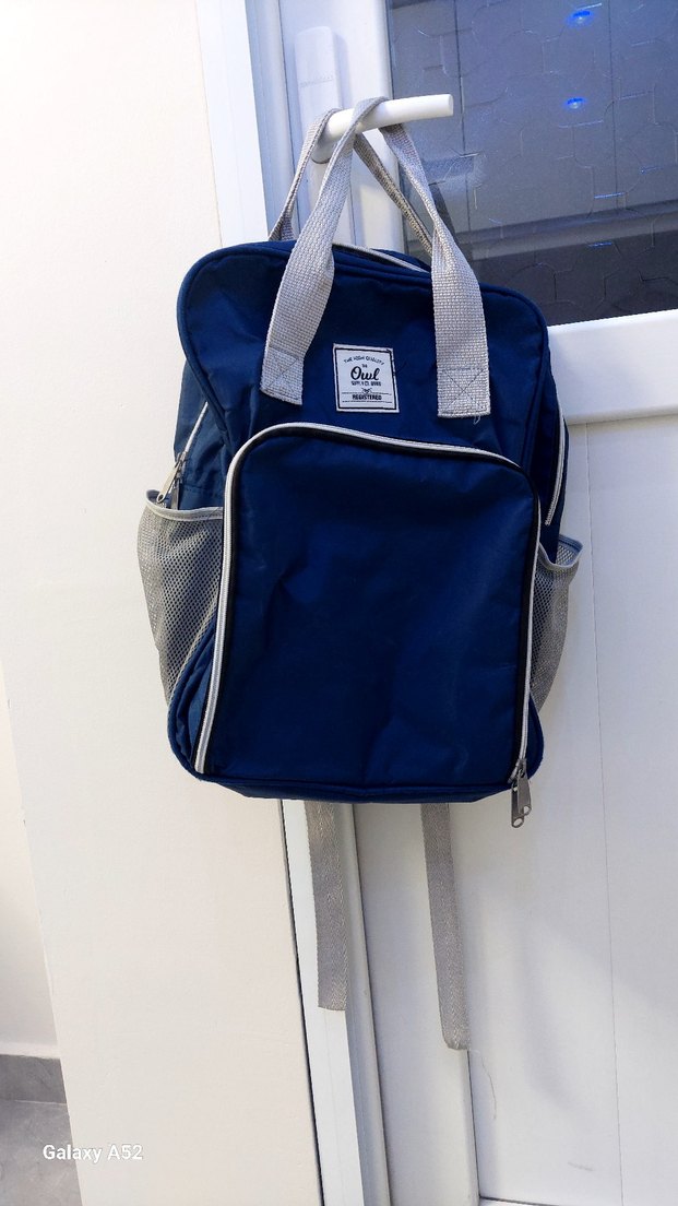 Gri saplı mavi bebek çantası